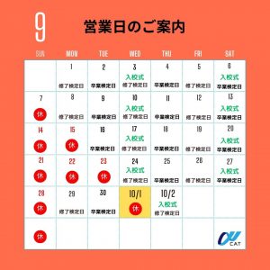 9月22日(月)は休校となります。ご迷惑をおかけします。